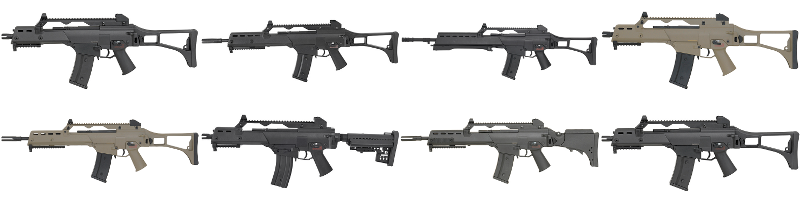 Например, ты можешь рассмотреть модели серии JG-608 — реплики разнообразных моделей штурмовых винтовок G36: