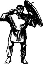 Отдых - «Суслик»Рука со щитом опущена и расслаблена. Рука с мечом полностью опущена и удерживает меч острием наружу. Такая подоплека создает впечатление неумелости бойца, а примененная во второй половине поединка, она имитирует состояние усталости. Применима для проведения сдвойки, стенки, петли-затрещины, отсечки для левши либо отмашки и обратки с выходом на накрут. Это положение экономично, так как практически совпадает с естественным расслабленным положением тела, поэтому именно в нем следует находиться до сближения на дистанцию атаки, равную сумме длины широкого подшага и длины руки с оружием — это примерно 2— 2,5 метра. |