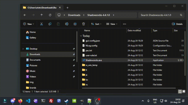 Перейдите в директорию с распакованными файлами Shadowsocks. Запустите Shadowsocks как показано далее: