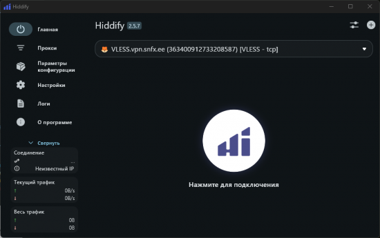 - Сразу после нажатия появится запись с профилем Hiddify в домене VLESS.vpn.snfx.ee