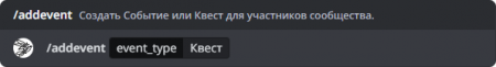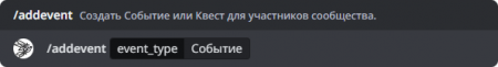 Бот может создавать несколько типов событий сообщества: «Мероприятия» и «Квесты». Предполагается что мероприятия - это события с конкретным местом и временем проведения, вероятнее всего, с физическим присутствием участников сообщества на месте. Квесты - по сути задания, которые участники могут выполнять в любом подходящем им месте и в любое подходящее им время, однако в строго определенный период времени (этим они отличаются от Достижений). В момент создания Событие, а также его дата проведения (в случае «Квеста» - срок исполнения), регистрируются в базе данных. Бот ожидает регистрации участников События до указанной даты проведения (срока исполнения). Бот не позволит создать новое Событие в том случае, если в системе уже зарегистрировано Событие выбранного типа, дата проведения (дата исполнения) которого еще не прошла. Таким образом, Бот позволяет осуществлять регистрацию участников только на одно событие каждого типа («Мероприятия», «Квесты») единовременно. Зарегистрироваться, чтобы участвовать в Событии, могут только пользователи канала, имеющие профиль в Системе достижений. |