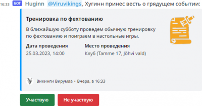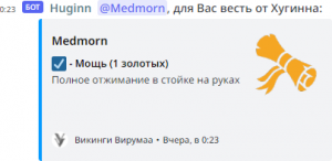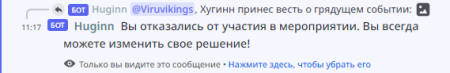 В деятельности сообщества мы стремимся использовать современные технологии для автоматизации ряда организационных процессов. Так несколько лет назад появился чат-бот для Discord - Хугинн. Недавно мы существенно обновили его, полностью переработав код, и добавив новый функционал. В скандинавской мифологии Хугин и Мунин — пара воронов, которые летают по всему миру и сообщают богу Одину о происходящем. На древнеисландском Huginn означает «мыслящий», а Muninn — «помнящий». Бот Хугинн хранит истории о подвигах Викингов, и сообщает им о важнейших событиях в жизни сообщества. Инструкция по установке и настройке бота, а также исходный код доступны в нашем репозитории: https://github.com/Viruviking/discordbot |