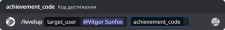 Пользователь, которому выдано достижение (и новый уровень - если таковой должен быть выдан), получит уведомление в канале уведомлений. Команда доступна только пользователям с ролью модератора или администратора.
