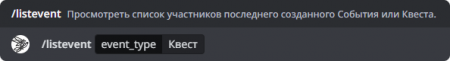 Команда показывает список зарегистрированных участников Квеста, для которого в данный момент открыта регистрация, либо для последнего Квеста, созданного при помощи Бота (в том случае, если срок выполнения уже прошел). Результат вывода команды будет показан пользователю, вызвавшему её. Команда доступна только для пользователей с ролью модератора или администратора.