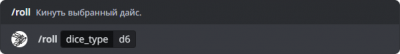 Команда показывает случайное значение кубика (дайса) выбранного типа. |