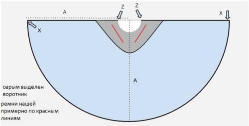 Вырежи кусок ткани в форме полукруга, как показано на схеме: