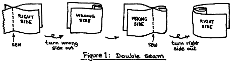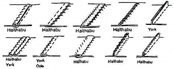 Фактура материала и расцветкаНаиболее аутентичные материалы: лён и шерсть. Шерсть получалась довольно просто, однако требовалось время чтобы найти правильную комбинацию цвета, структуры шерстяной ткани. Лён был дорог, поэтому вместо него могли использовать грубый хлопок. Костюмы более позднего периода раннего средневековья включали в себя элементы из шелка и бархата. Фактура и вес ткани имеет значение. Ткани раннего средневековья были сотканы вручную, поэтому они были более грубыми, чем современные ткани. Одежда раннего средневековья выглядит лучше, если сделана из грубого материала. Впрочем, если вы используете тонкий и лёгкий материал - это не является проблемой. Посмотреть подходящие ткани вы можете в галантерее в отделе занавесок и обивки для мебели. Необязательно использовать натуральную ткань. Вы можете использовать смешанные ткани с подходящей фактурой. Подбирайте тканый материал вместо трикотажа. Например я использую материал выглядящий как лён для штанов раннего средневековья. Вы можете использовать бязь для рубах и штанов. Она повторяет структуру льна, однако значительно дешевле его. Это идеальный вариант для тех, кто хочет практиковать навыки изготовления средневековой одежды не беспокоясь о порче дорогостоящей ткани. Вязь идеально подходит для стирки. Большинство простых швов являются аутентичными. В идеале, все швы должны быть выполнены вручную. Однако, Вы можете сшить свой костюм на швейной машинке - в итоге швов всё равно будет не видно. Тем не менее применение ручного шва будет более корректным. Не беспокойтесь о том, что шов будет выглядеть недостаточно ровно. Рекомендуем использовать шов, приведенный на рисунке ниже: